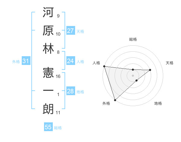 河原林 憲一朗さんの総格は55画の1点!