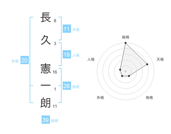 長久 憲一朗さんを姓名の画数から五運を鑑定