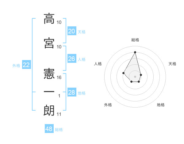 高宮 憲一朗さんを姓名の画数から五運を鑑定