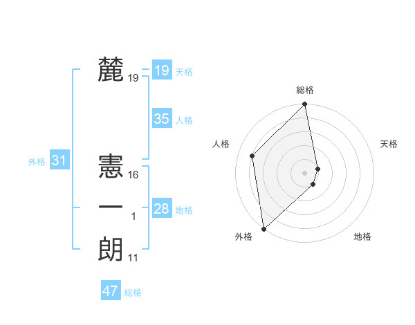 麓 憲一朗さんの総格は47画の5点!