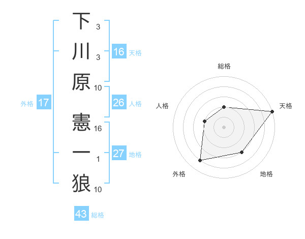 下川原 憲一狼さんを姓名の画数から五運を鑑定