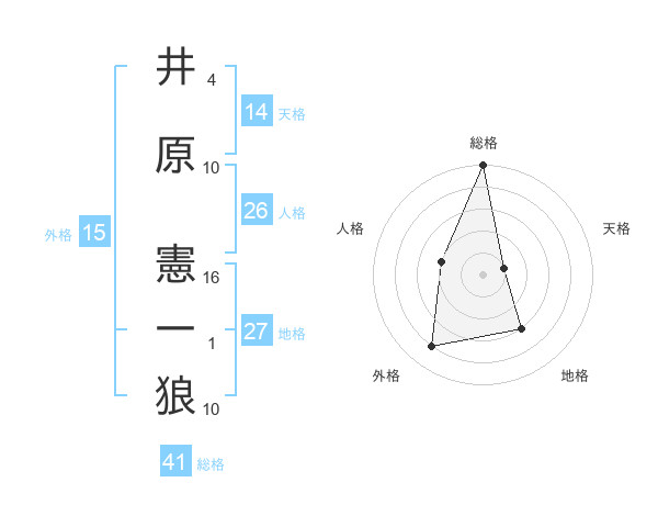 井原 憲一狼さんを姓名の画数から五運を鑑定