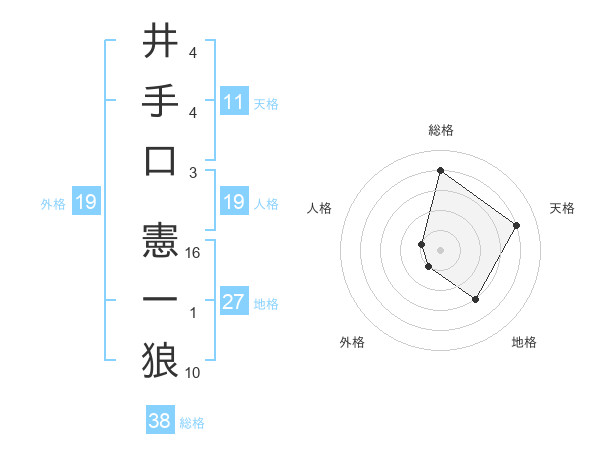 井手口 憲一狼さんを姓名の画数から五運を鑑定