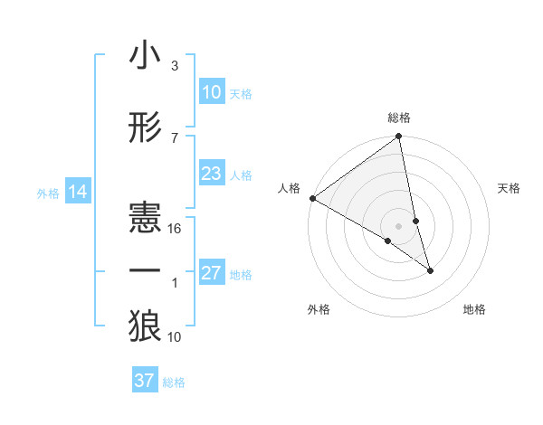 小形 憲一狼さんの総格は37画の5点!