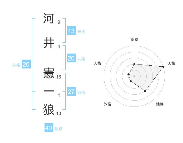 河井 憲一狼さんの総格は40画の2点!