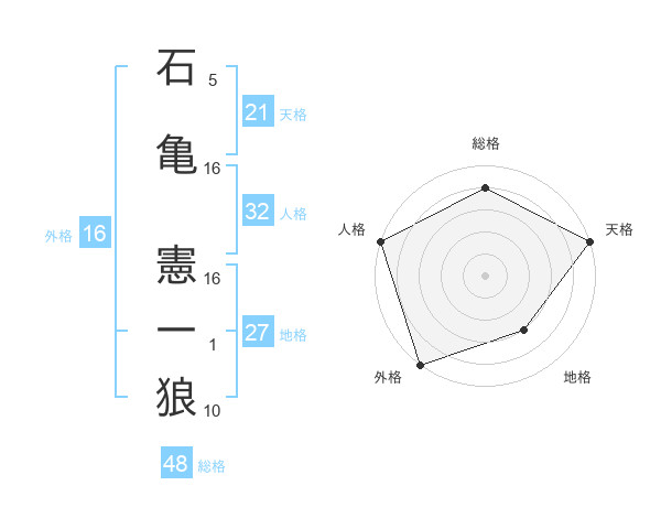 石亀 憲一狼さんを姓名の画数から五運を鑑定