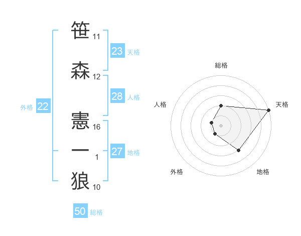 笹森 憲一狼さんを姓名の画数から五運を鑑定