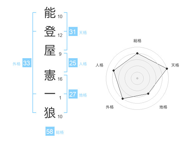 能登屋 憲一狼さんを姓名の画数から五運を鑑定
