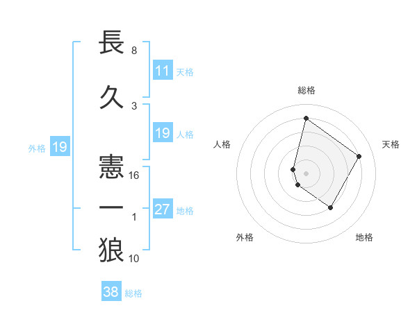 長久 憲一狼さんを姓名の画数から五運を鑑定