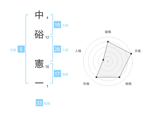中硲 憲一さんを姓名の画数から五運を鑑定
