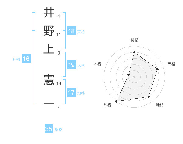 井野上 憲一さんの総格は35画の4点