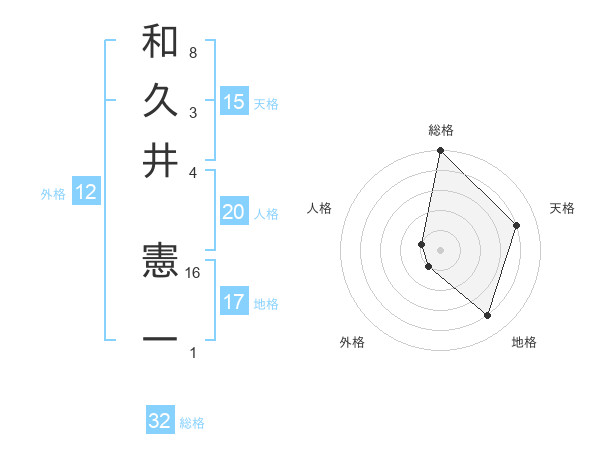 和久井 憲一さんを姓名の画数から五運を鑑定