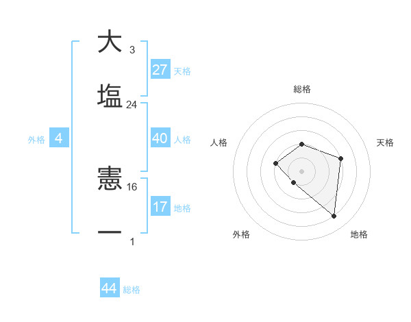 大塩 憲一さんの総格は44画の2点!