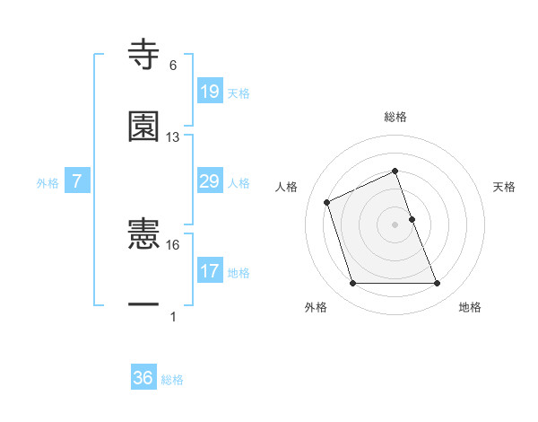 寺園 憲一さんの総格は36画の3点!