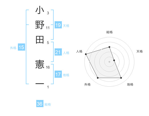 小野田 憲一さんの外格は15画の4点!