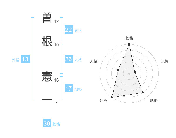曽根 憲一さんを姓名の画数から五運を鑑定