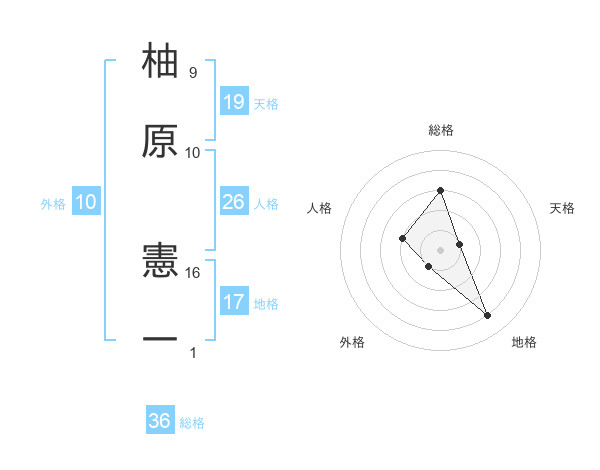 柚原 憲一さんを姓名の画数から五運を鑑定