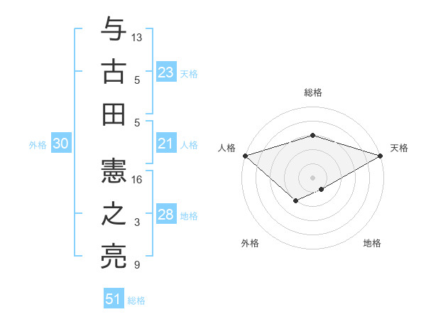 与古田 憲之亮さんを姓名の画数から五運を鑑定