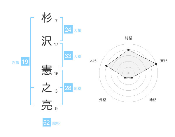 杉沢 憲之亮さんを姓名の画数から五運を鑑定