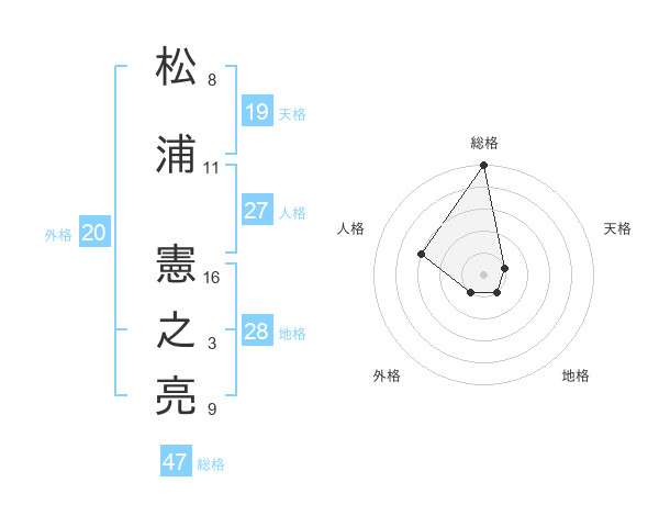 松浦 憲之亮さんを姓名の画数から五運を鑑定