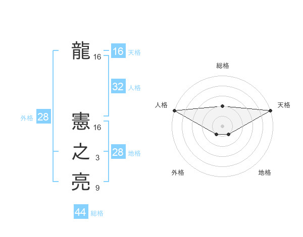 龍 憲之亮さんを姓名の画数から五運を鑑定