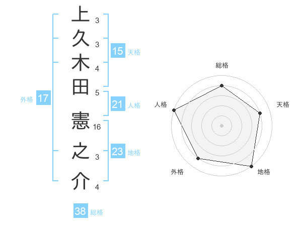 上久木田 憲之介さんの総格は38画の4点!