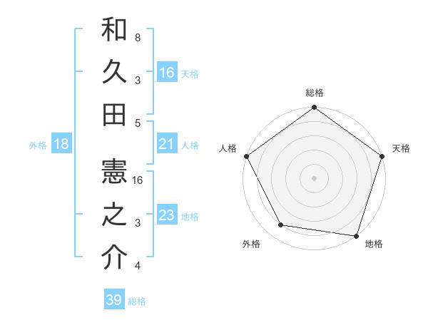 和久田 憲之介さんを姓名の画数から五運を鑑定