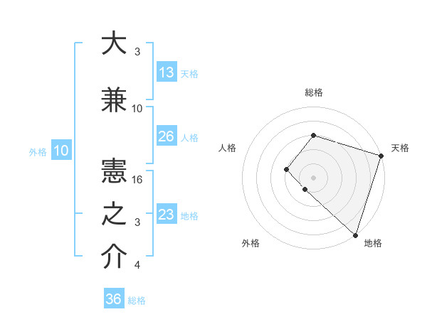 大兼 憲之介さんの天格は13画の5点!