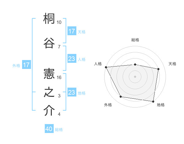 桐谷 憲之介さんを姓名の画数から五運を鑑定