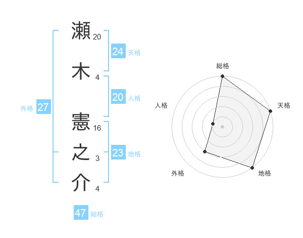 瀬木 憲之介さんを姓名の画数から五運を鑑定