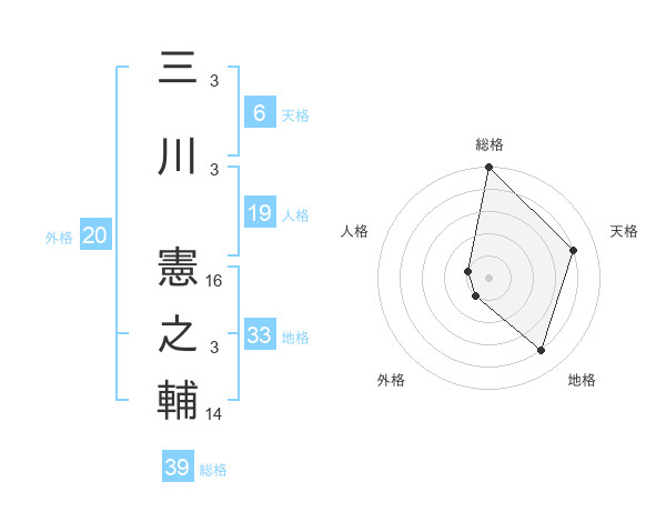 三川 憲之輔さんの天格は6画の4点!