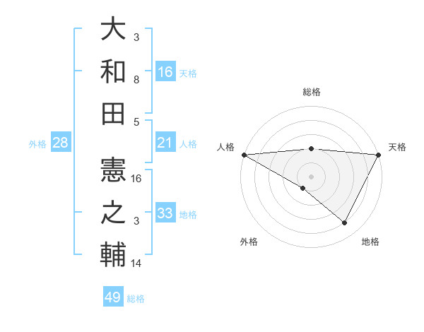 大和田 憲之輔さんを姓名の画数から五運を鑑定