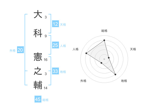 大科 憲之輔さんを姓名の画数から五運を鑑定
