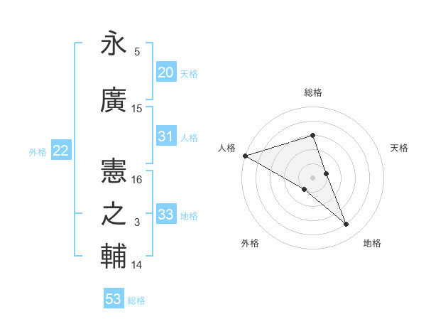 永廣 憲之輔さんの総格は53画の3点!