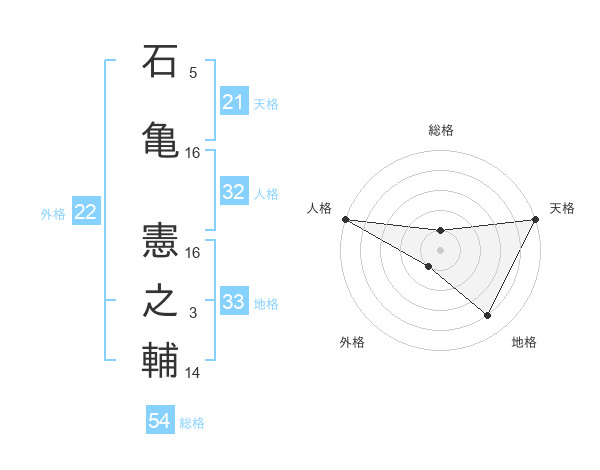 石亀 憲之輔さんの天格は21画の5点!