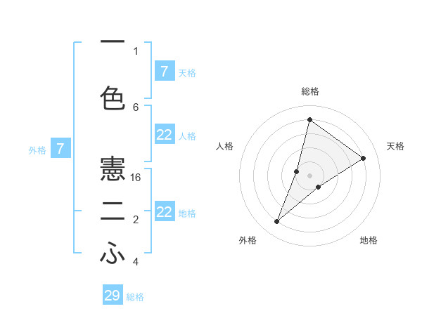 一色 憲二ふさんを姓名の画数から五運を鑑定