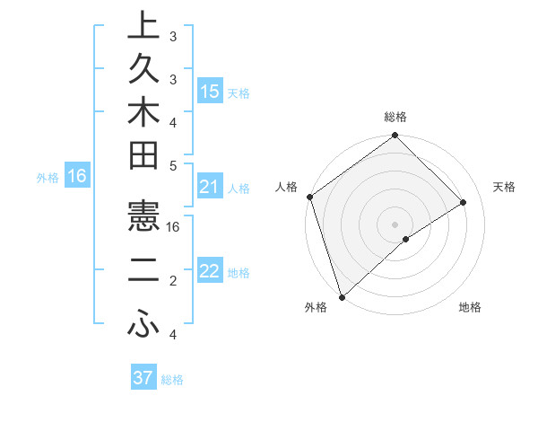 上久木田 憲二ふさんを姓名の画数から五運を鑑定