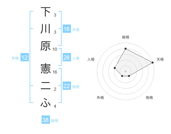 下川原 憲二ふさんを姓名の画数から五運を鑑定