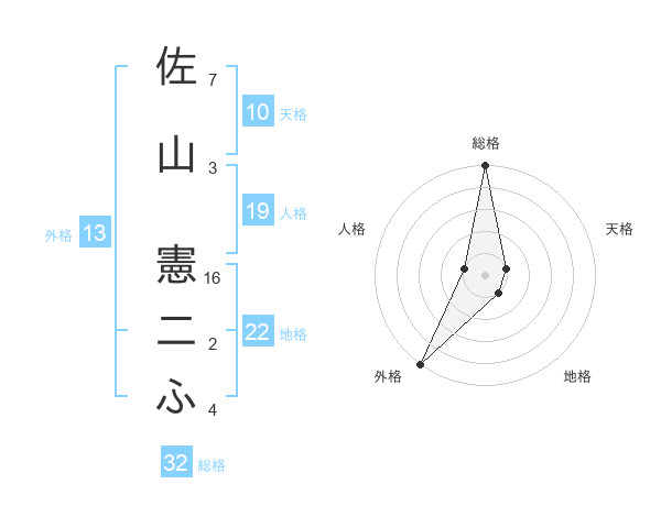 佐山 憲二ふさんを姓名の画数から五運を鑑定