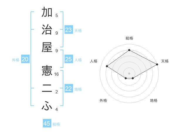 加治屋 憲二ふさんの総格は45画の4点!