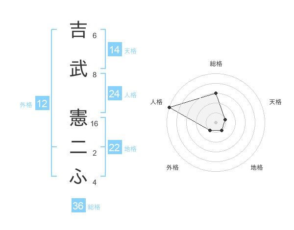 吉武 憲二ふさんを姓名の画数から五運を鑑定