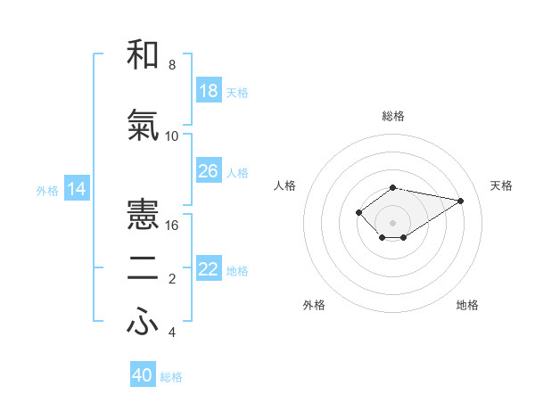 和氣 憲二ふさんの地格は22画の1点!