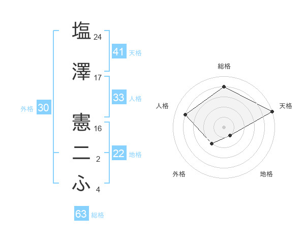 塩澤 憲二ふさんを姓名の画数から五運を鑑定