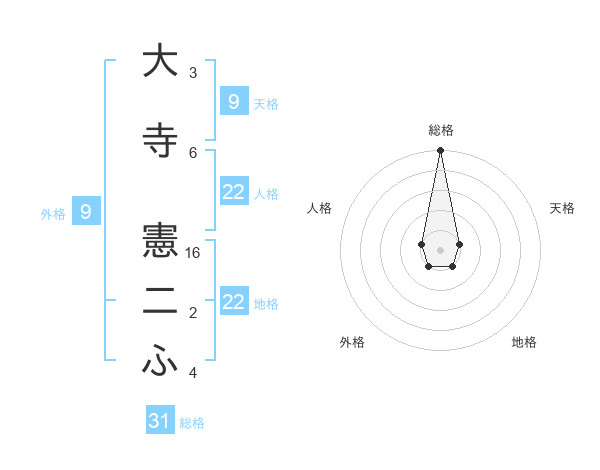 大寺 憲二ふさんを姓名の画数から五運を鑑定