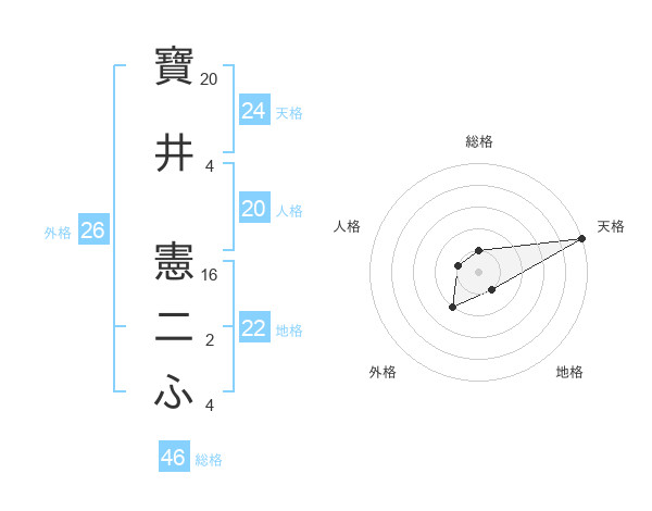 寶井 憲二ふさんを姓名の画数から五運を鑑定