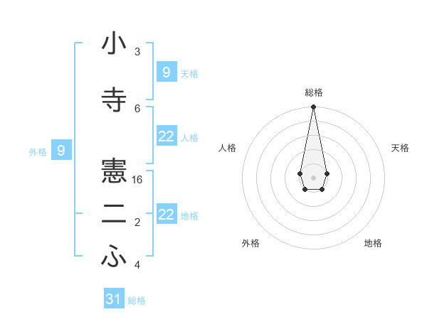 小寺 憲二ふさんを姓名の画数から五運を鑑定
