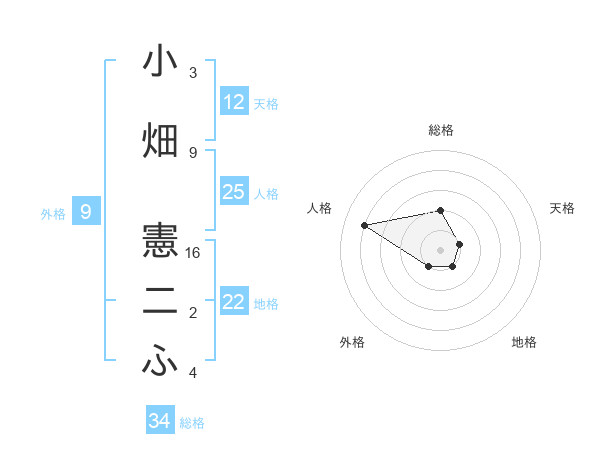 小畑 憲二ふさんを姓名の画数から五運を鑑定
