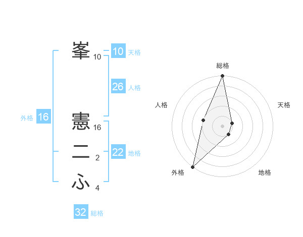 峯 憲二ふさんの外格は16画の5点!