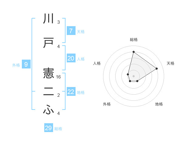 川戸 憲二ふさんを姓名の画数から五運を鑑定