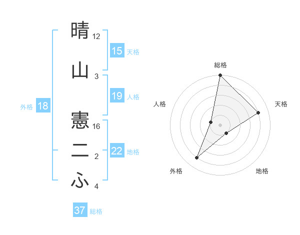 晴山 憲二ふさんを姓名の画数から五運を鑑定